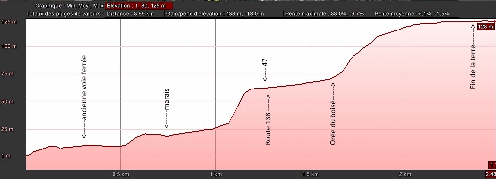fille du Marquerite Lamain est originaire de St-Vivien de Rouen en Normandie. Elle est la fille de Jacques et de Marquerite Deshaies, tous deux nés vers 1630 en Normandie. Selon le dictionnaire Jetté, elle est née vers 1656 (au recensement 1681, elle déclare être âgée de 24 ans). Mariage Michel Rognon avait une alliée très précieuse dans le choix de son épouse puisqu’il avait fait part de ses intentions à Anne Gasnier, alors âgée de 59 ans, veuve de Jean Bourdon, le seigneur de Dombourg, qui lui avait octroyé sa concession. Elle a donc guidé son protégé dans le choix d’une bonne fille à marier. Le 3 septembre 1670, Michel Rognon et Marguerite Lamain signent un contrat de mariage devant le notaire Romain Becquet. Marguerite apportait avec elle 300 livres d’effets et de biens personnels dont la moitié entre dans la communauté ainsi que la dot de 50 livres promise par le roi. Le 14 septembre suivant, ils passent à l’église Notre-Dame de Québec où le curé Henri de Bernières bénit leur union devant la Sainte Église. Les témoins au mariage furent Charles Bady dit Laforest, Laurent Casteau et Charles de Laurice. Vie familiale Depuis 1670 jusqu’à sa mort survenue le 8 novembre 1684, âgé d’environ 45 ans, peu de documents témoignent de ce qu’a été la vie de Michel Rognon dit Laroche en Nouvelle France. Nous avons retracé dans les registres de la paroisse de Neuville, que Michel Rognon fut parrain à quatre reprises: le 16 août 1671 de Marie Delorice, le 6 avril 1676 de Marie Denys, la marraine est l'épouse de son voisin Jean Fauconnet dit Lafleur, le 5 juin 1677 de Marie Daveau, fille de son voisin Charles Daveau et le 3 février 1683 de M.-Louise Lauriot, fille de Jean Lauriot dont le fils Joseph épousa M.-Jeanne Rognon la fille de Michel Rognon, en 1699. Quant à Marguerite Lamain, elle fut marraine deux fois: le 1er mai 1675, de Marguerite Daveau, fille de leur voisin et le 24 mai 1678, de Paul Martel, fils d'Honoré Martel. "La concession de Michel Rognon est située près du fleuve et comporte quatre plateaux distincts avec une pente très prononcée (33 %) entre le deuxième et le troisième plateau. Cette pente très adrupte devait compliquer l'exploitation agricole de sa terre. Le profile ci-dessous indique que le terrain le plus plat et qui semble le plus propice à l'agriculture était sur le plateau trois. Étant donné qu'à son époque une bonne partie de la circulation se faisait sur le fleuve ou sur le chemin du Roy qui longeait ce dernier, on peut penser que sa maison et ses bâtiments de ferme devaient se trouver tout près du fleuve. Donc ses cultures devaient se faire surtout sur les plateaux un et deux, où il y avait des buttes. La terre n'est pas très propice à l'agriculture, mais par son travail acharné il réussit à la défricher et cultiver toutes sortes de grains. Profile d'élévation de la terre de Michel Rognon en fonction de la distance à partir du fleuve (Cliquer dessus pour l'agrandir). Au recensement 1681, il est inscrit sur le quatrième lot du côté est de la seigneurie dont le nouveau seigneur est Nicolas Dupont depuis un an. Michel déclare être âgé de 42 ans et posséder 1 fusil, 3 bêtes à cornes et 12 arpents en valeur ce qui est beaucoup pour l'époque. Ses voisins sont Charles Davau et Honoré Martel. Ce dernier avait acheté la concession de Charles Deloris le 10 octobre 1674. On peut aujourd'hui admirer l'emplacement et le paysage de la concession de Michel Rognon. On en retrouve une partie sur le terrain de l'emplacement portant le numéro civique 49, sur la route 138, à Neuville. L'Association des Familles Laroche et Rochette a revisité ce site lors de son rassemblement de 2013. Pour en savoir plus sur la terre de Michel Rognon, consulter le Larochette de décembre 2017 en cliquant sur le lien suivant: Larochette de décembre 2017. NB- Cette partie a été ajoutée par Georges Vaillancourt en 2018" Michel Rognon est décédé dans sa maison le 8 novembre 1684 et ses funérailles ont eu lieu le 10 novembre en l'église de St-François-de-Sales de Neuville. Il n'avait que 45 ans. Il laisse une épouse à peine âgée de 28 ans et six enfants, dont l'ainé Charles n'a pas encore 12 ans. Marguerite a hérité de la moitié de la terre de son premier mari, l'autre moitié a été léguée à ses enfants. Laissée à elle même avec très peu de ressources, Marguerite Lamain n'eut pas d'autre choix que de se remarier le 8 janvier 1685, soit deux mois jour pour jour après le décès de Michel, avec Pierre Mercier, un jeune homme de 32 ans meunier de son métier. De ce mariage naitront huit autres enfants dont seulement deux, Antoine et Pierre, survivront. Aussitôt après son mariage, Pierre, aidé par les enfants ainés de Marguerite, entreprend l'exploitation de la terre de Michel Rognon qu'il fera fructifier et prospérer. Les six enfants du couple Rognon/Lamain Charles (1673), Denis (1674), Guillaume (1676), Marguerite (1678), Marie Jeanne (1681) Louis (1683). Tous sont nés et furent baptisés à Dombourg. Les quatre premiers enfants le furent par des prêtres missionnaires qui les ont ensuite inscrits au registre de la paroisse Notre-Dame de Québec. Marie Jeanne et Louis furent baptisés et inscrits au registre de la paroisse St-François-de-Sales-de-Neuville par le curé Jean Pinguet. Tous se sont mariés et eurent des enfants.